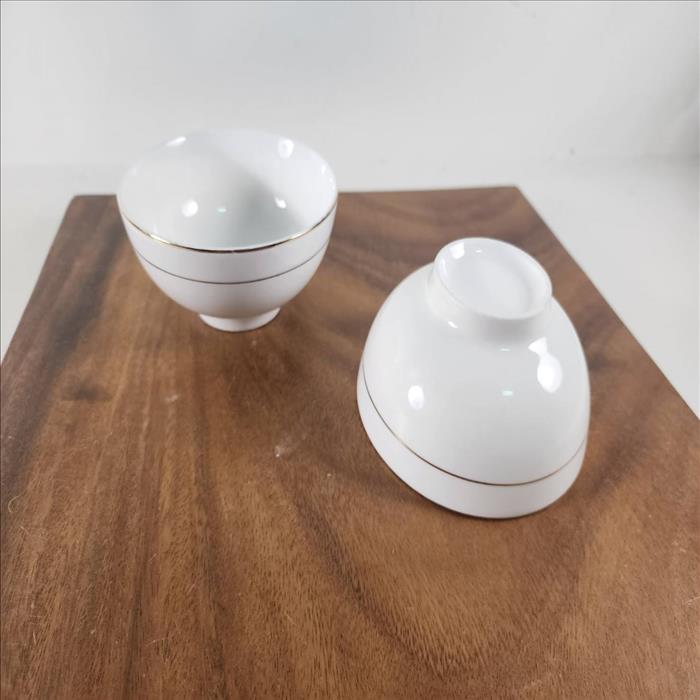 4.5吋 純白強化瓷飯碗 金線 藍邊 麵碗 湯碗 飯碗 可客製化印刷LOGO 釉上彩圖樣