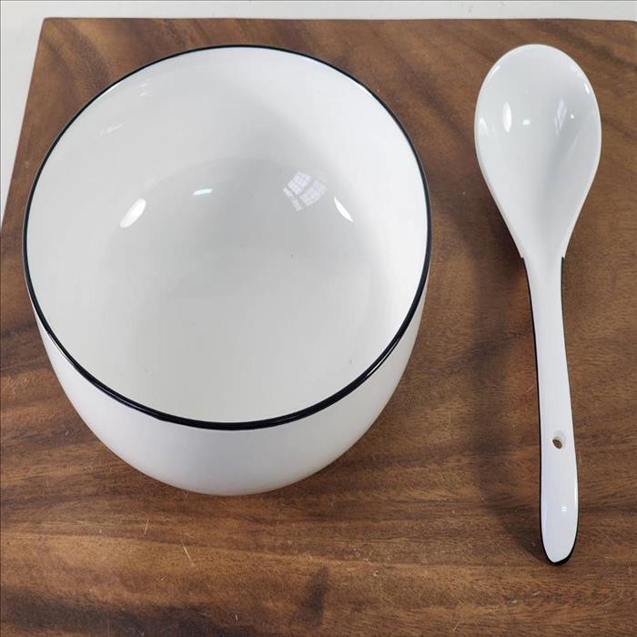 8吋純白麵碗 黑線湯碗 湯品碗 可以客製釉上燒製圖樣另洽客服
