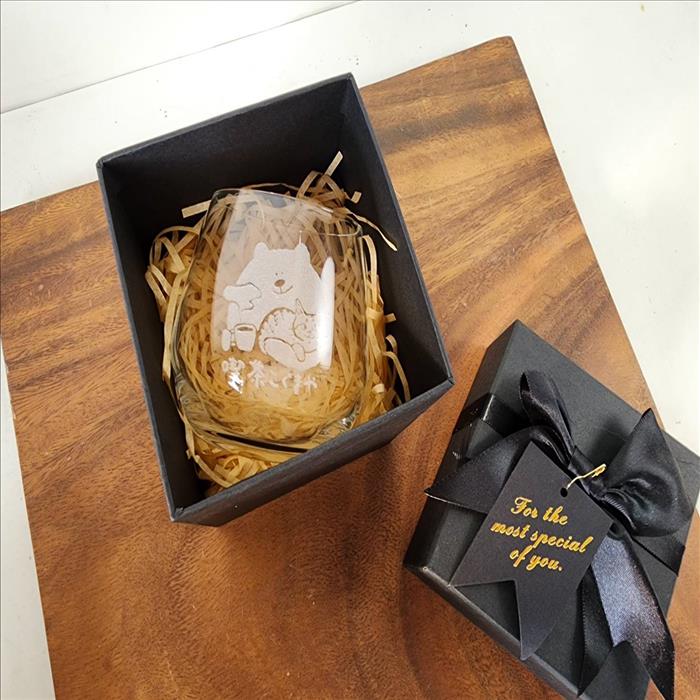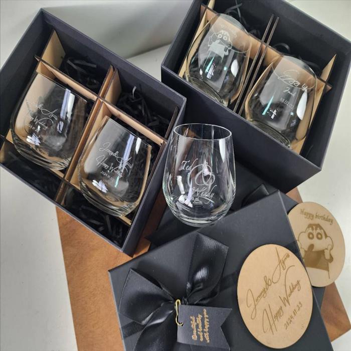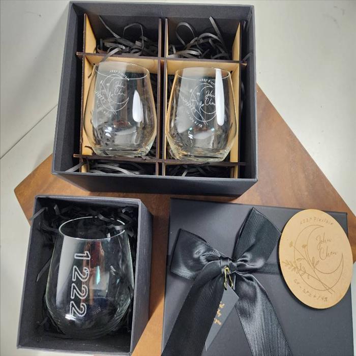玻璃杯雕刻 威士忌酒杯 雙入禮盒 洛克杯 可刻名字 LOGO 附禮盒紙袋 木質賀卡