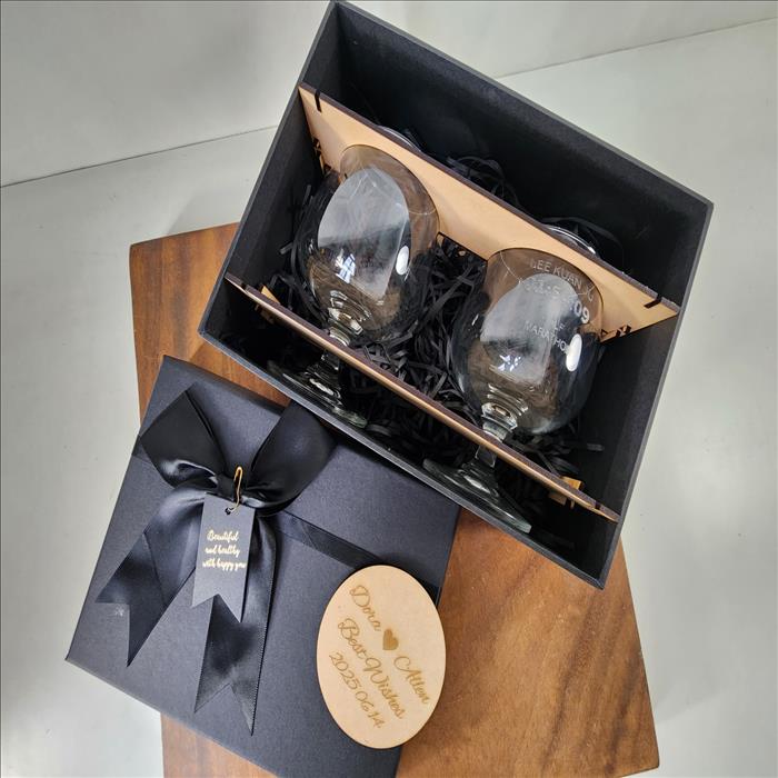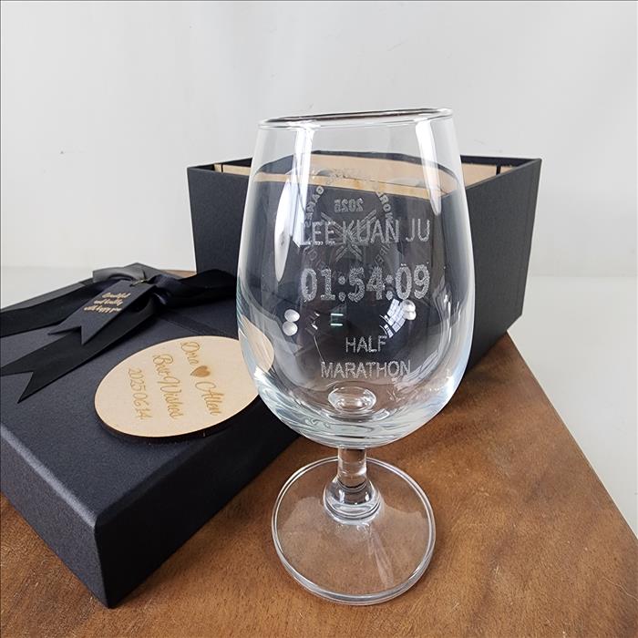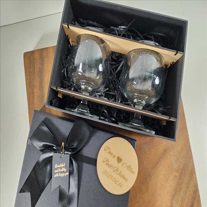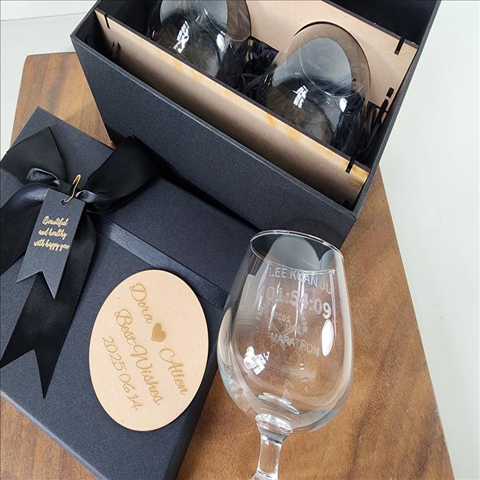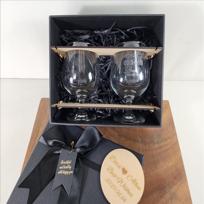 玻璃杯雕刻 大白蘭地杯12oz 雙入禮盒 威士忌杯 可刻名字 LOGO 附禮盒紙袋木質賀卡