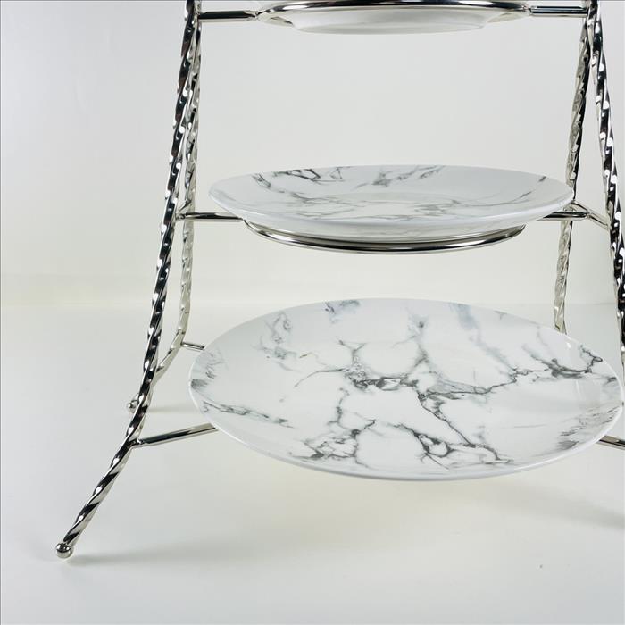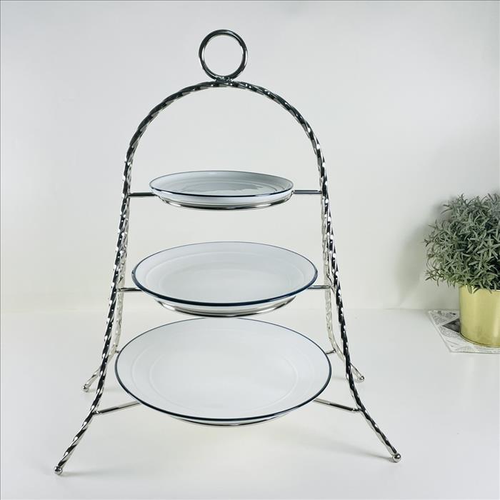 螺旋塔型三層盤架/蛋糕架/點心架/下午茶架/ 亮銀款