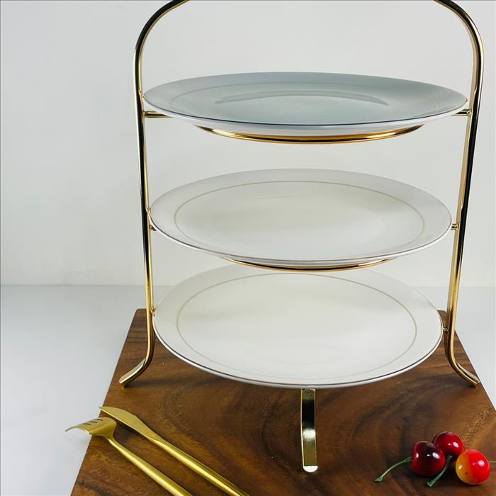 英式扁線三層下午茶架/蛋糕架/點心架/下午茶架/(矮款)/亮金色