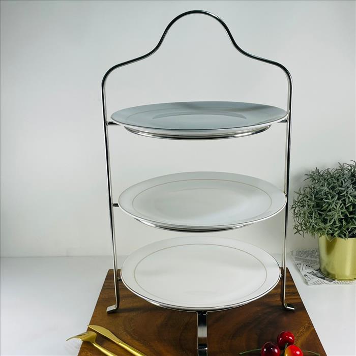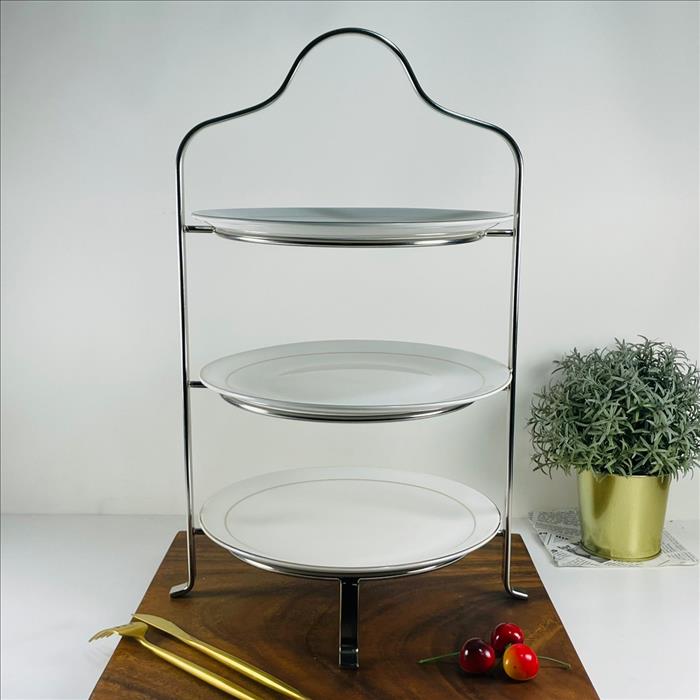英式扁線三層下午茶架/蛋糕架/點心架/下午茶架/(高款)亮銀色