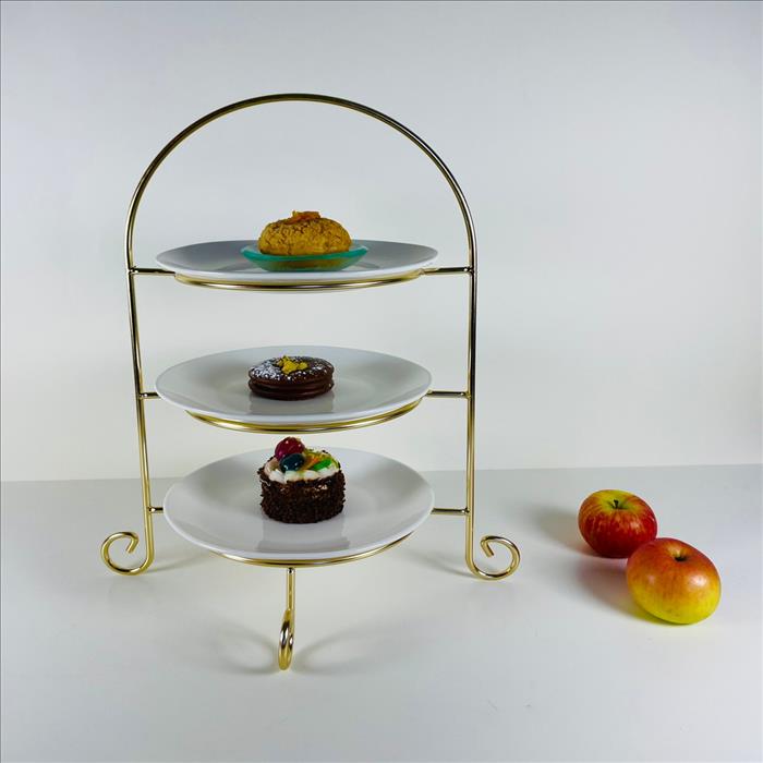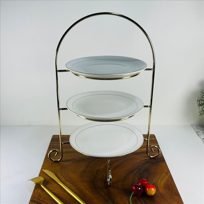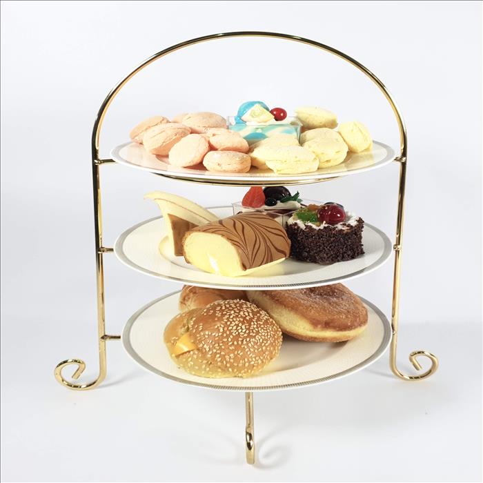 經典三層圓型點心盤架/蛋糕架/點心架/下午茶架/亮金色 餐盤可額外訂製圖案