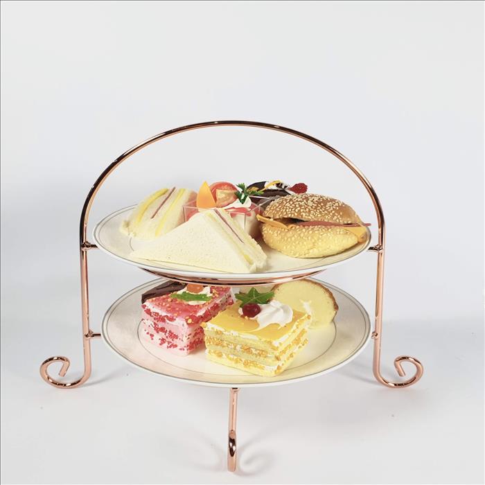 經典二層圓型點心盤架/下午茶架/玫瑰金色