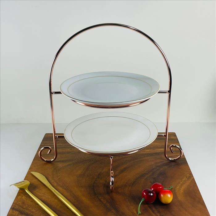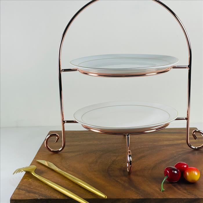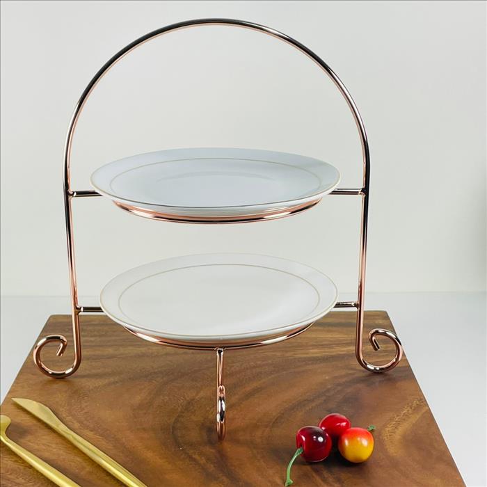 經典二層圓型點心盤架/蛋糕架/點心架/下午茶架/玫瑰金色