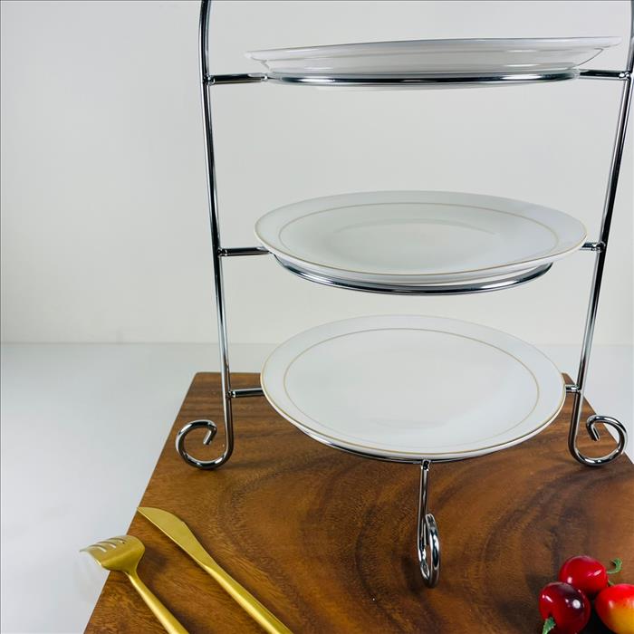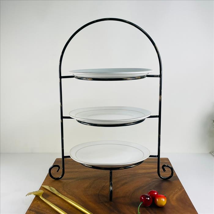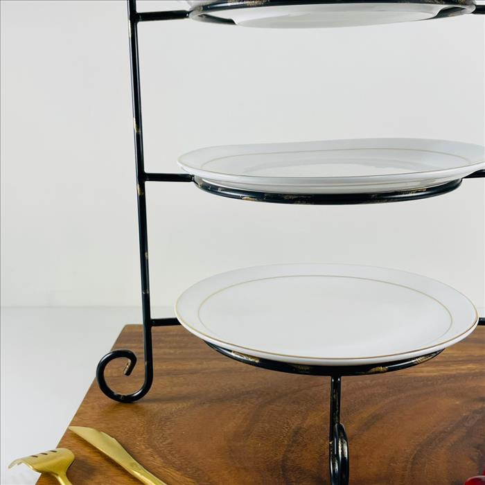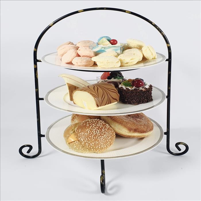 經典三層圓形點心盤架/蛋糕架/點心架/下午茶架/烤漆黑金
