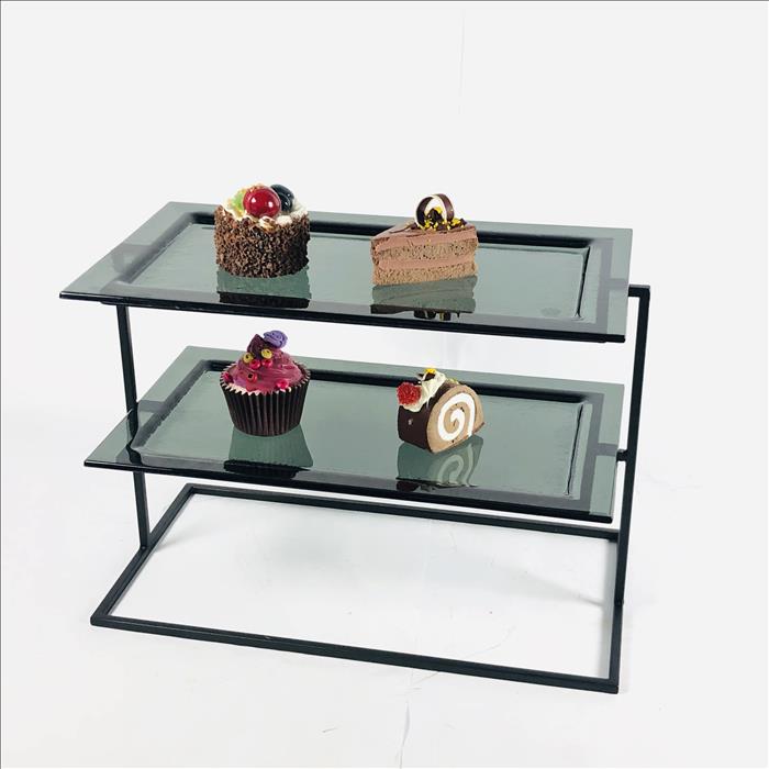 長方型雙層Cable盤架 層架/蛋糕架/點心架/下午茶架(烤漆霧黑)