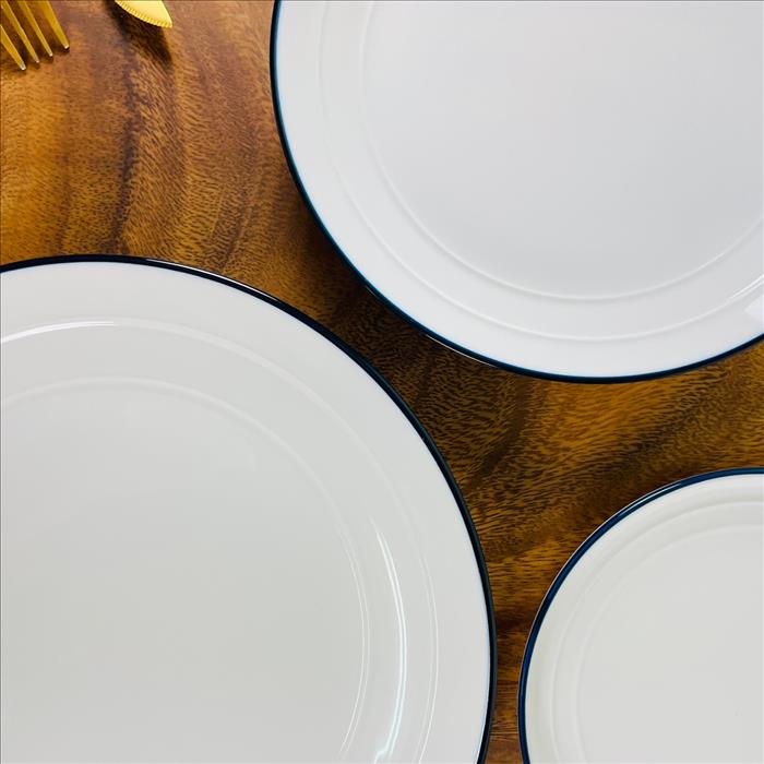 北歐風 深藍邊線條圓盤白色(10吋、8吋、6吋)