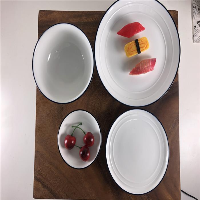 北歐風 深藍邊線條圓盤、醬油碟、飯碗白色(10吋、8吋、6吋、5.5吋、4吋) 可客製化印刷 釉上彩